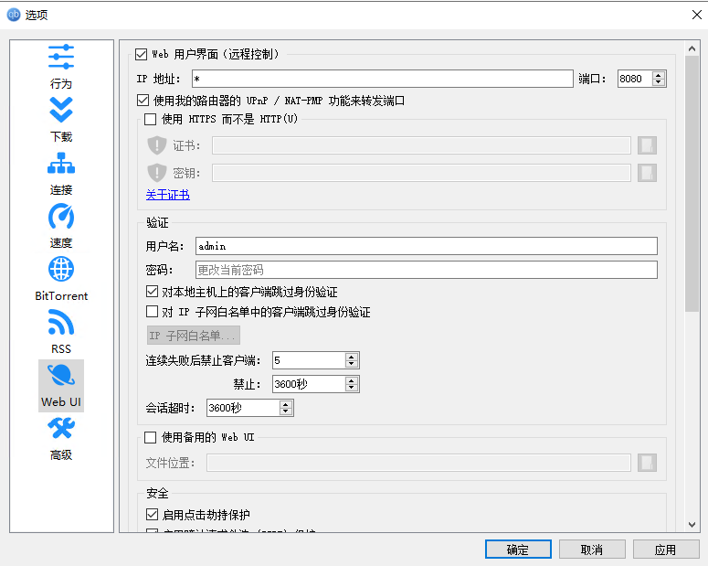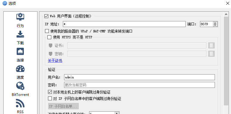 若8080端口被其他应用占用,可更改qbittorrent端口号。