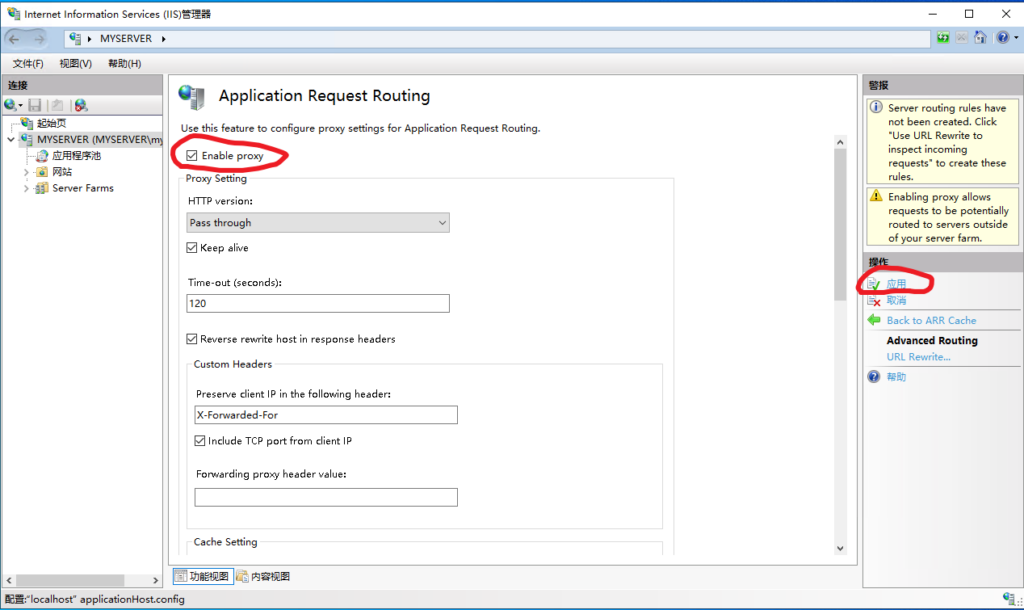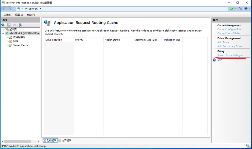打开 Application Request Routing Cache ,之后打开 Server Proxy Setting