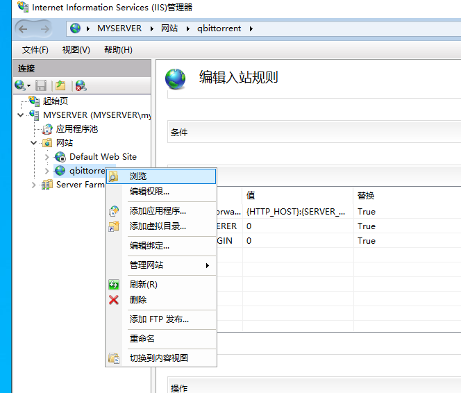 除非特殊情况,完全没必要这么整,qbittorrent自带web界面。但总有某些情况下不能让qbittorrent的web界面占用80或443端口的情况。此时用反向代理可以解决,windows系统下还是用IIS好些。