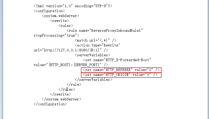 把 <set name="HTTP_REFERER" value="0" /> 和 <set name="HTTP_ORIGIN" value="0" /> 中的”0“删除