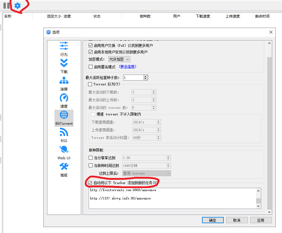 tracker 获取地址: https://github.com/ngosang/trackerslist