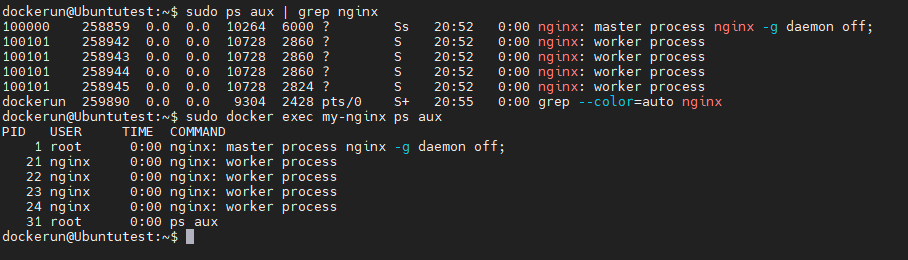 以nginx镜像(非 Root版本)为例。本例只演示镜像运行的用户权限。