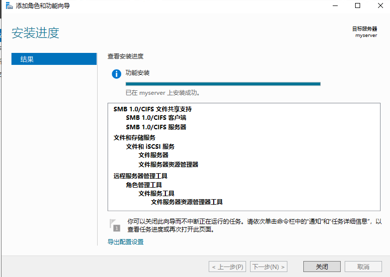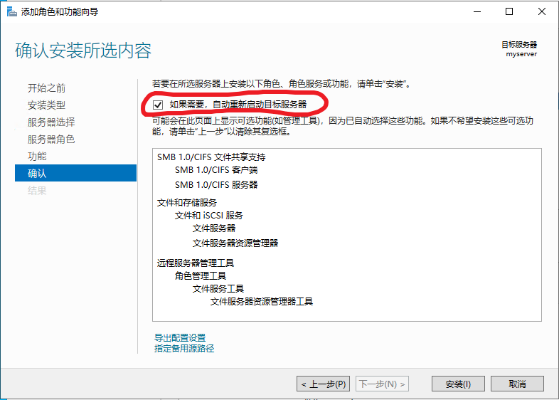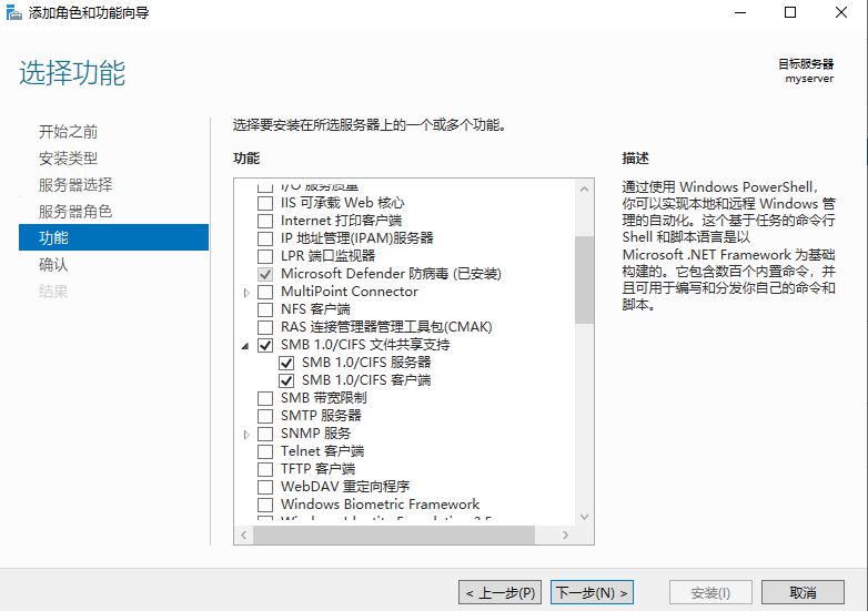根据需求可顺便安装不同的功能。此处安装SMB 1.0