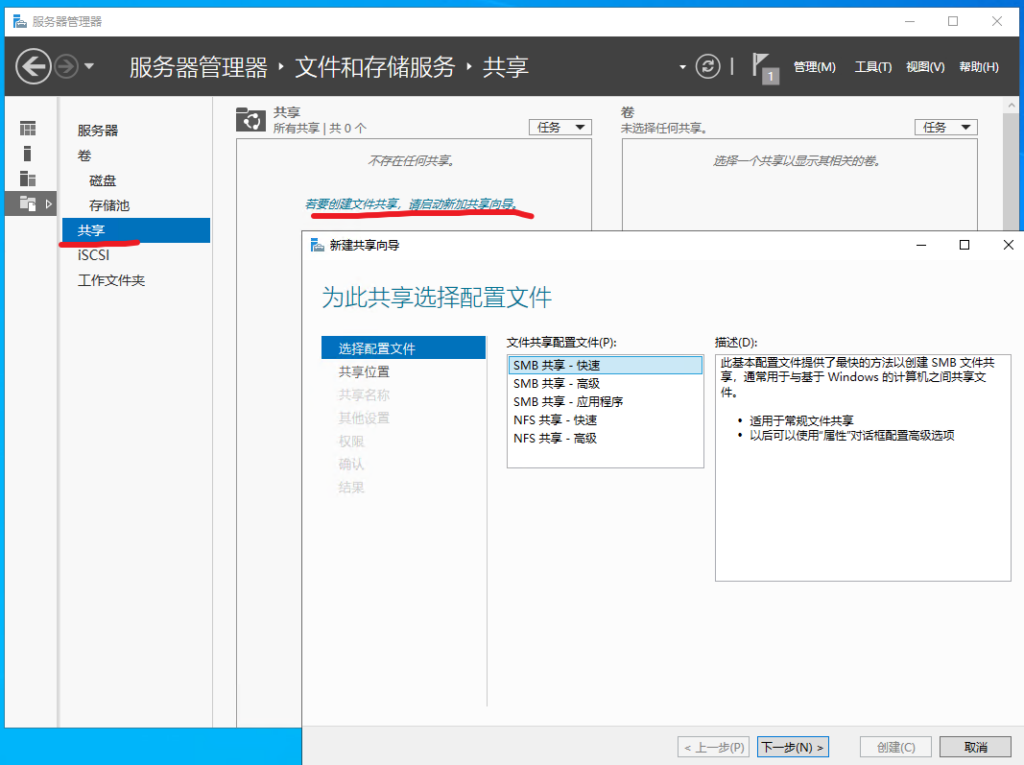 此处若选择“按卷选择”会在硬盘中自创建“Shares”文件夹并在此文件夹中设置共享。