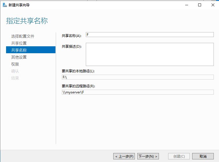 输入共享名称——即网络共享硬盘(或文件夹)的名称。