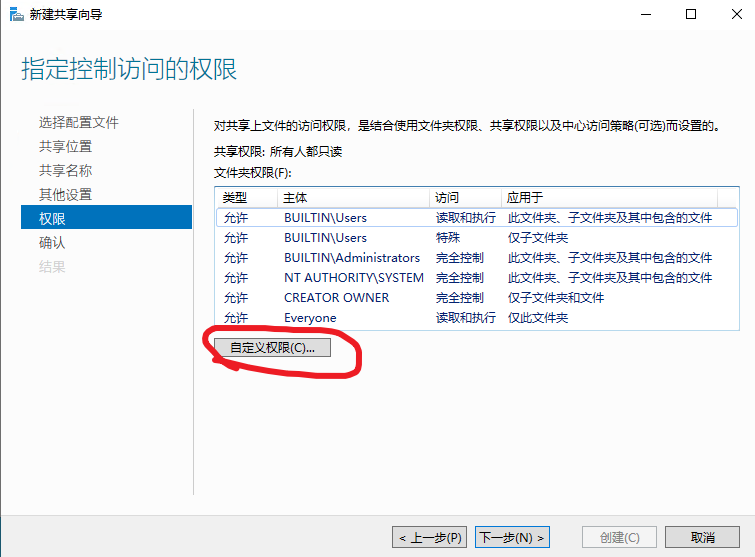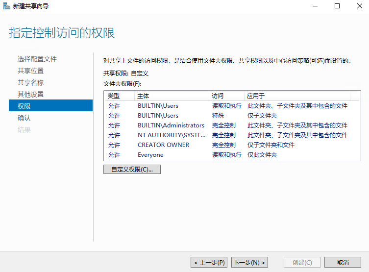 启用基于存取的枚举(如果没有勾选那么用户可以看到没有访问权限的文件夹,勾选后对用户没有权限的文件夹会自动隐藏,局域网内自用不需要勾选)
