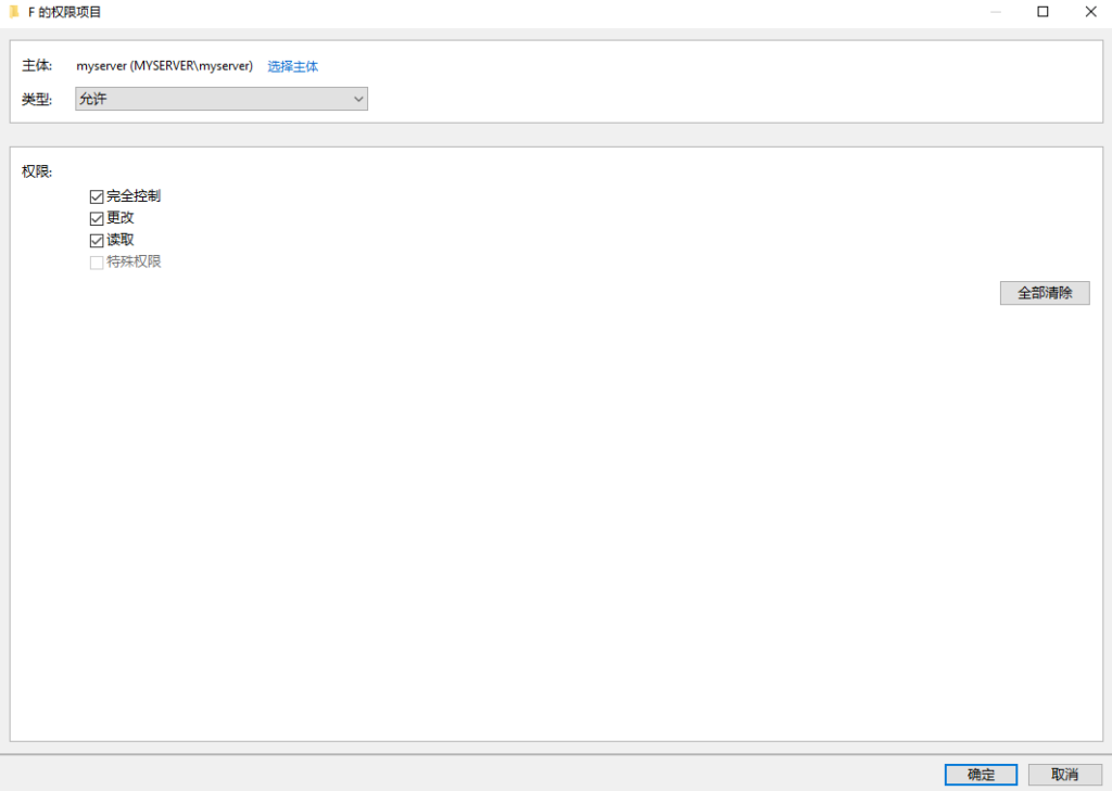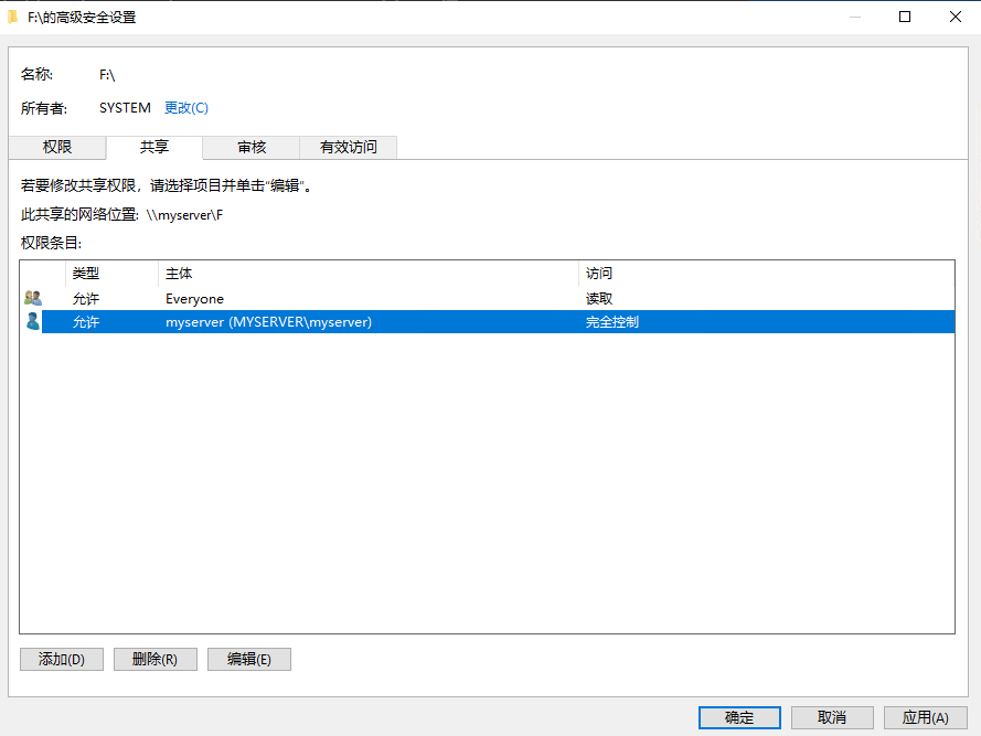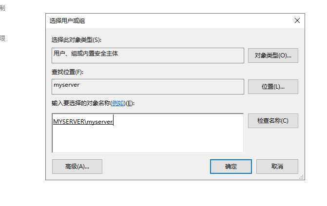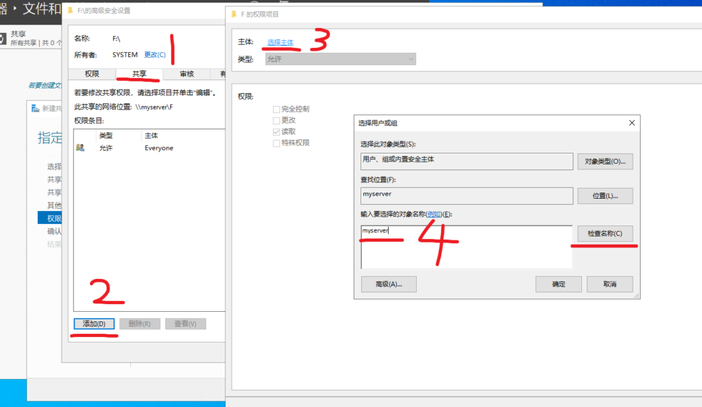 自定义权限——共享选项卡——添加——选择主体——管理员名称输入到对象名称框里